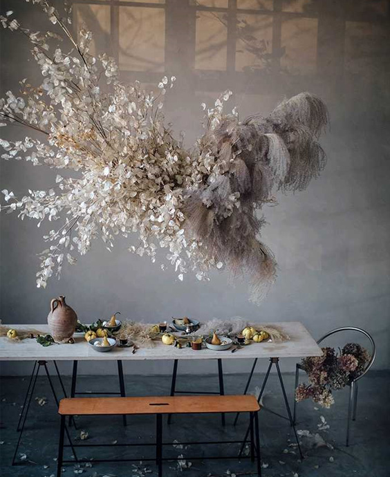 将有生命的鲜花,融入到整体环境之中,通过虚与实、远与近,花与物的融合设计,让整体空间与花艺软装完美结合。在插花培训课程中,我们不仅仅停留在对花材的选择与设计上,更多的在于结合花器、配饰、道具等设计元素的搭配运用。各类风格迥异的素材如竹子,木皮,各种藤蔓,都能大而化之的加以利用,巧妙地的利用粘贴、编织、缠绕等架构的花艺技巧,创造出与主题、空间、情景完美符合的空间花艺设计作品。