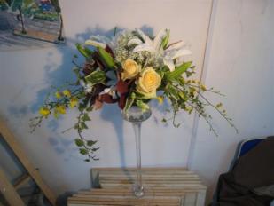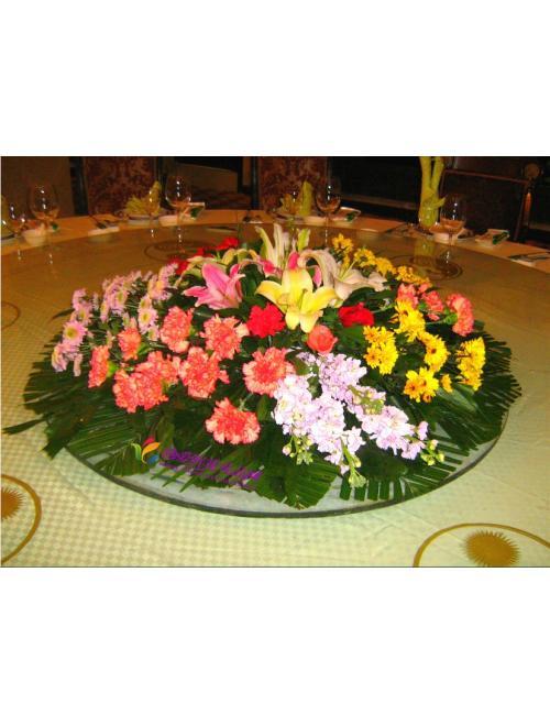 一是千篇一律。在九十年代初期,餐桌的插花并不多见,当 时的餐桌插花大多以简单的瓶插或规则的几何造型为主,如半 圆形、椭圆形等。花卉用常见的月季、石竹、扶朗、剑兰等。色 彩以暖色系为主。档次较低质量较差的仿真人造花时有出现, 而高水准的插花花艺作品,只出现在个别高档的酒店。