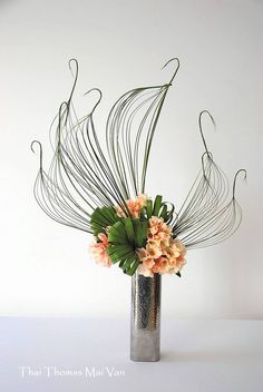 ③ 折/折叠——把一些长茎花材或者类似的辅助材料,折叠成各种几何图形应用于造型中,可以扩大空间,增加层次感、活跃感。
