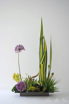 ⑦ 组群/群聚——组群是将同种类同色系的花材分组分区插,组与组之间加留空间,花材可高可低。可创造出一种有组织有计划的感觉,欣赏到不同种类色彩形态和质感。群聚是将相同的花材紧密的集合插在一起,使同一类花的数量形状或花材形成一个整体,与组群的区别在与在于花材之间不留空隙,有团状之感。