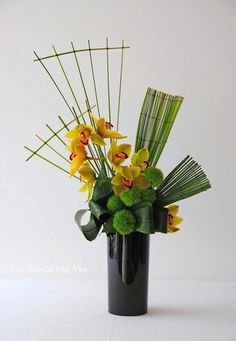 ⑯ 阶梯——每一朵花之间以等或不等的距离一支更比一支高地插,就像是一级一级的阶梯,由低向高延伸,表现花材的韵律美,宜用点状或片状花材。